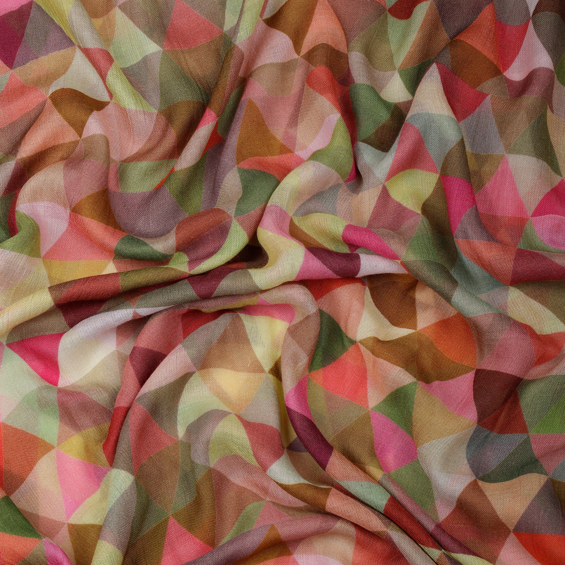Geometric Mosaic Scarf – Modal Silk Designer Wrap | Multicolor Triangle Abstract Print