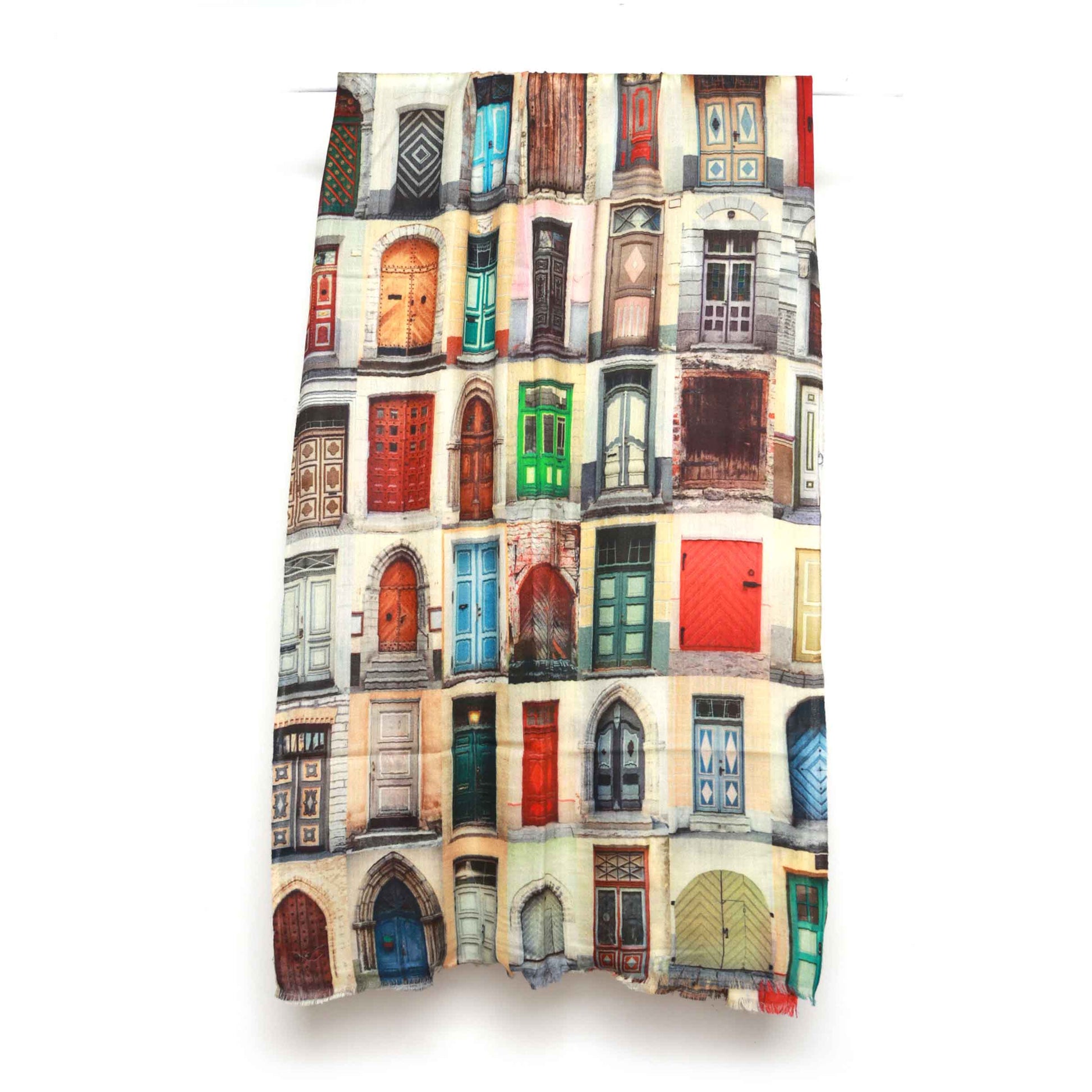Heritage Doorway Art Scarf – Modal Silk Designer Wrap | Architectural Multicolor Print