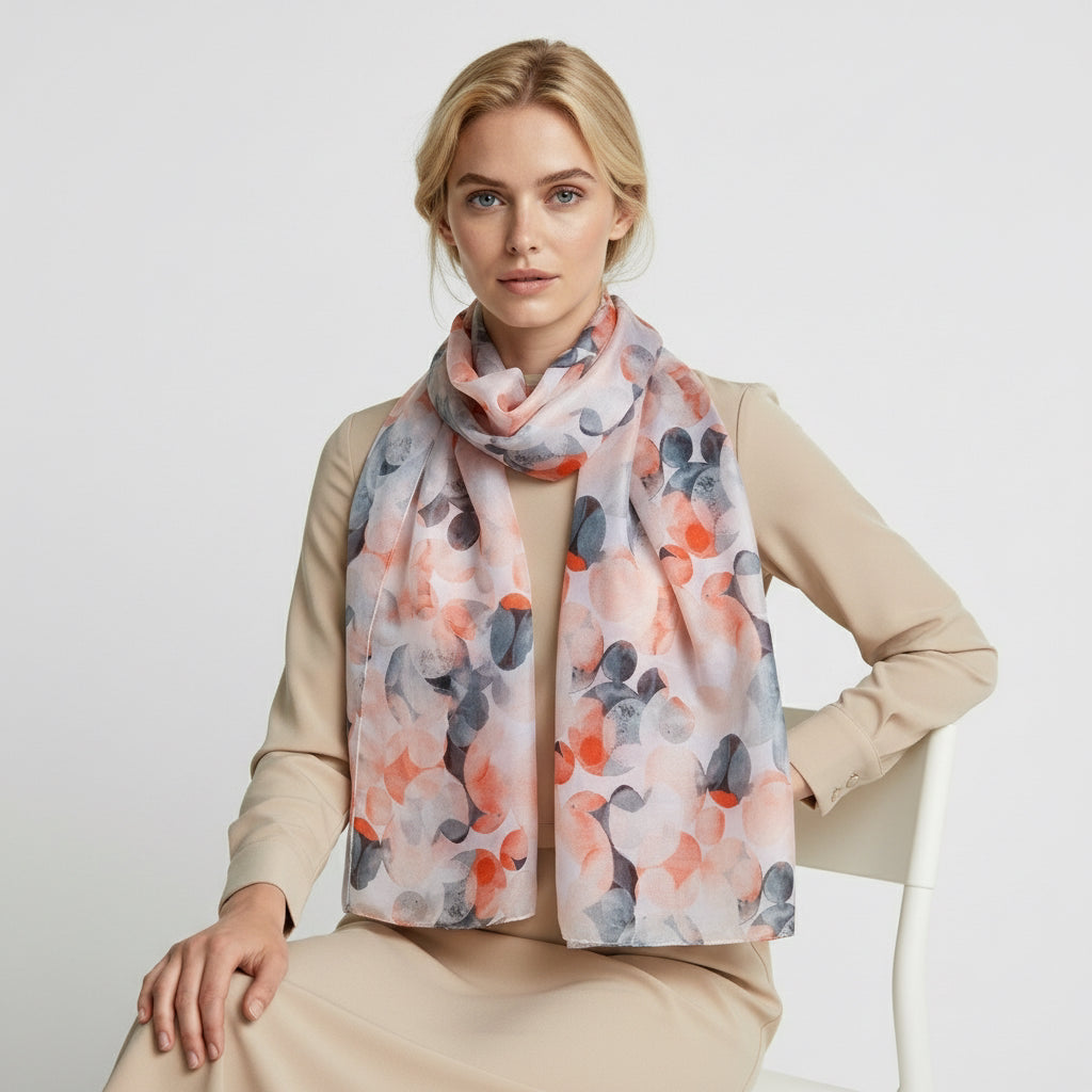 Blush Watercolor Circles Scarf – Pure Silk Modal Blend | Abstract Pastel Print Wrap