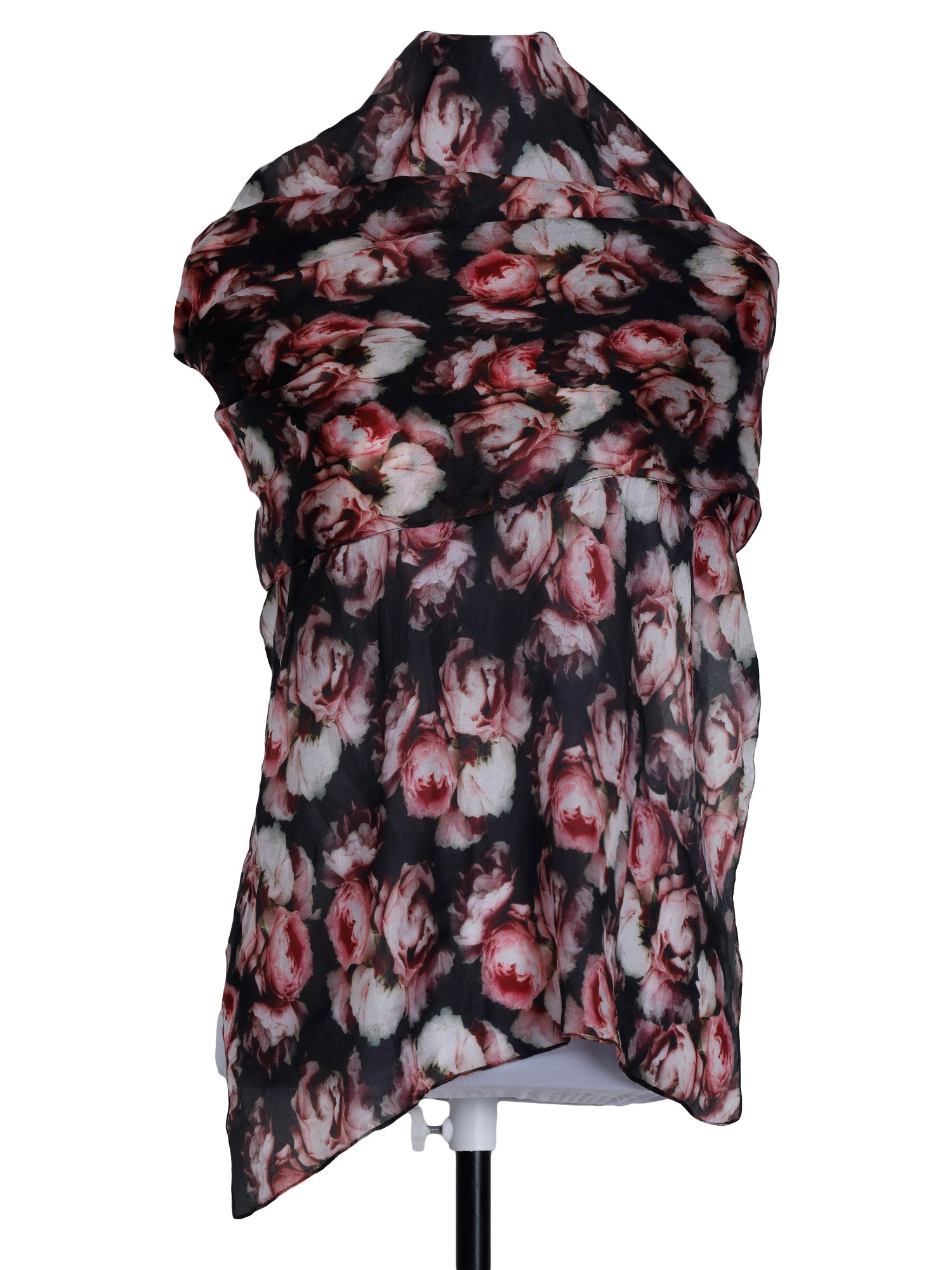 Rose Petal Garden Floral Scarf – Pure Silk Designer Wrap | Vintage Bloom Print