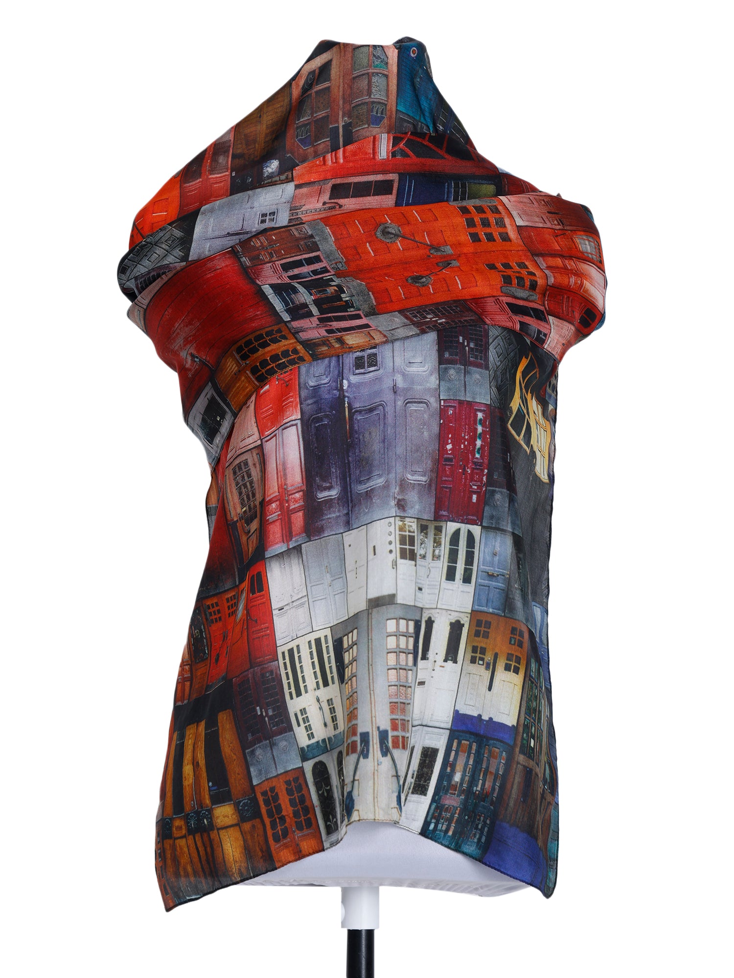 Architectural Red Doorway Art Scarf –  Pure Silk Designer Wrap | Multicolor Abstract Heritage Print