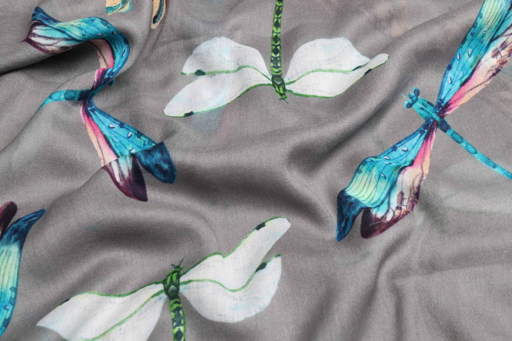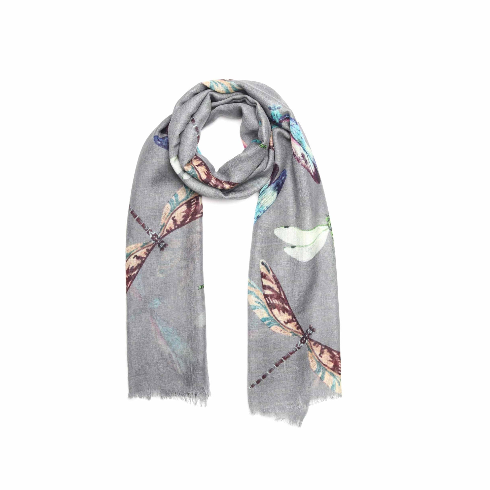 Grey Dragonfly Scarf – Luxury Merino Wool Silk Silk | Nature-Inspired Insect Print