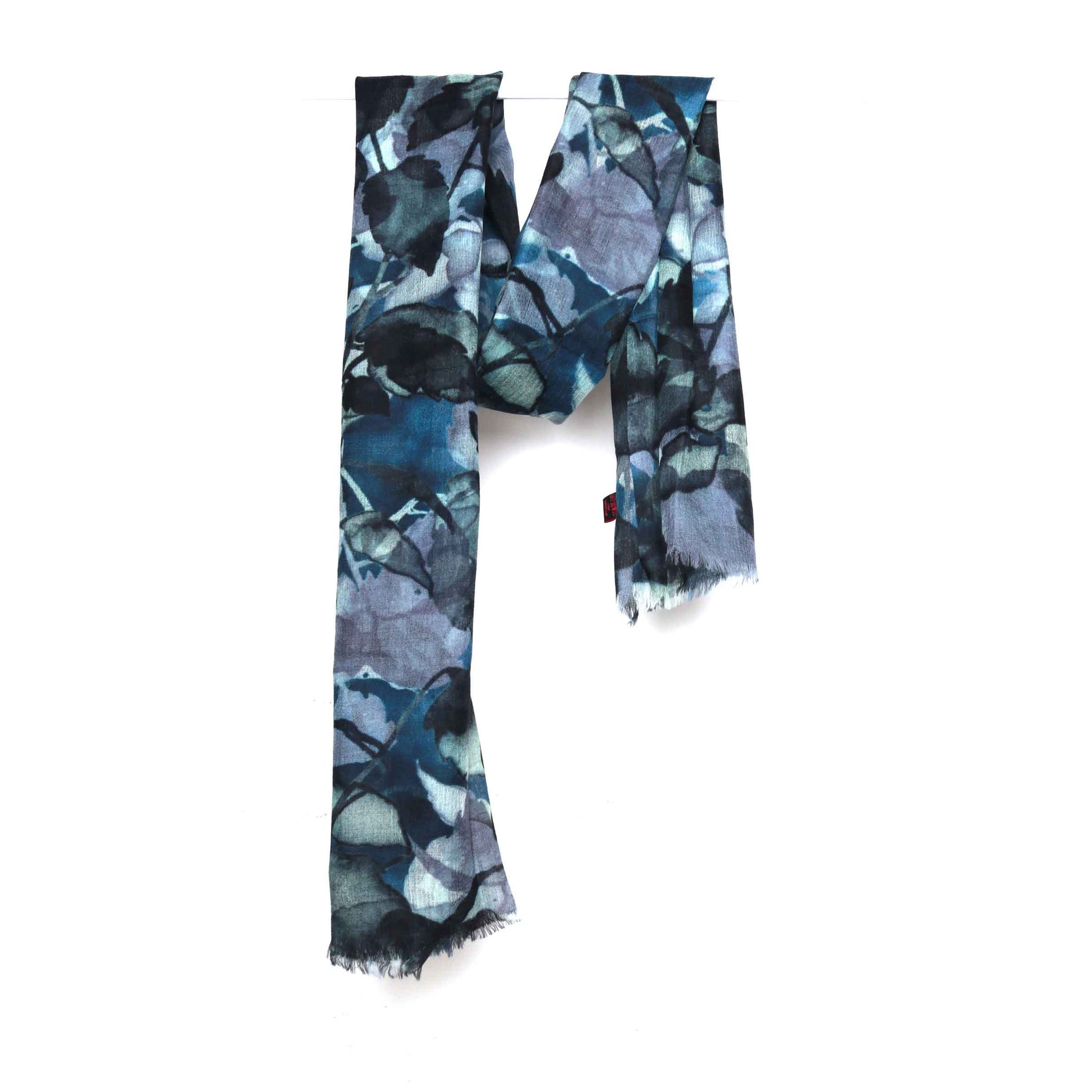 Midnight Ivy Scarf – Cotton Modal Wrap | Monochrome Leaves on Turquoise Green Canvas