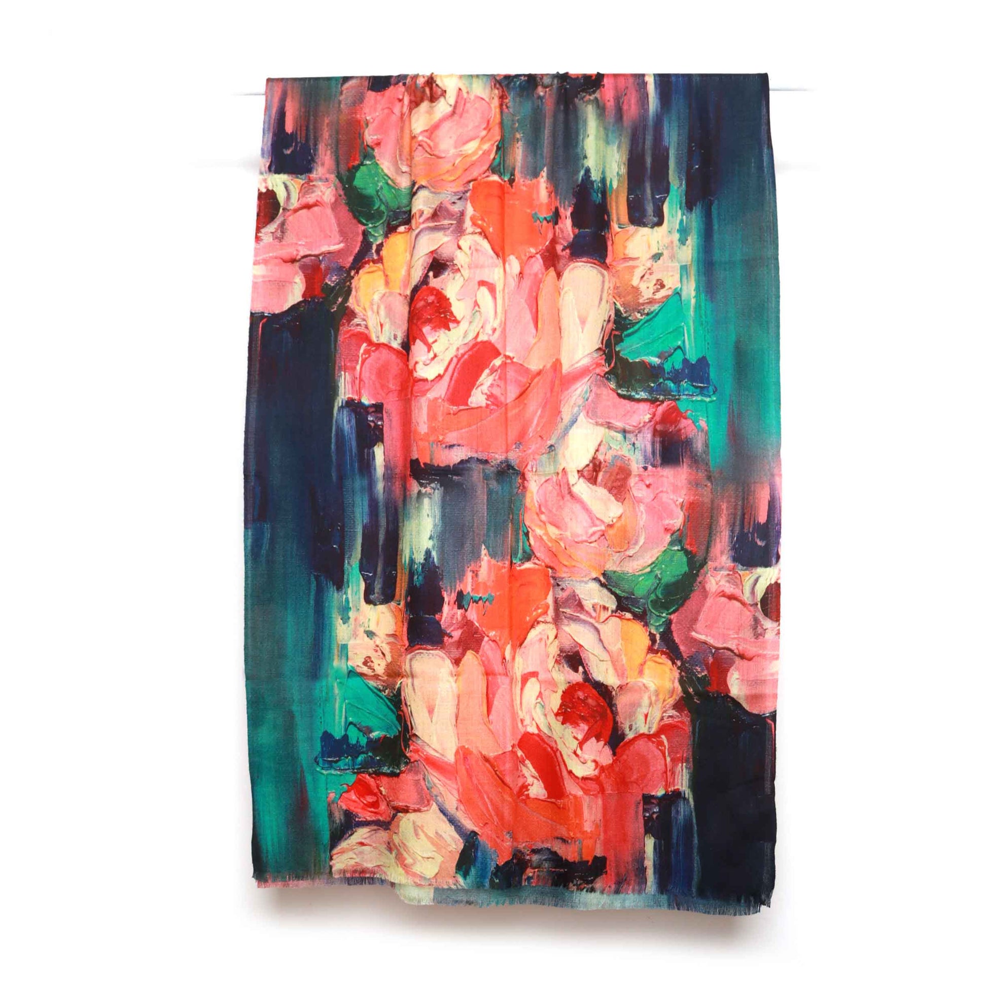 Peony Garden Abstract Floral Scarf – Modal Silk Designer Wrap | Floral Print Scarf