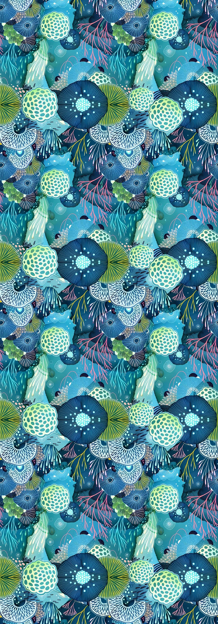 Ocean Bloom Abstract Scarf – Cotton Voile Designer Wrap | Underwater Botanical Blue Print