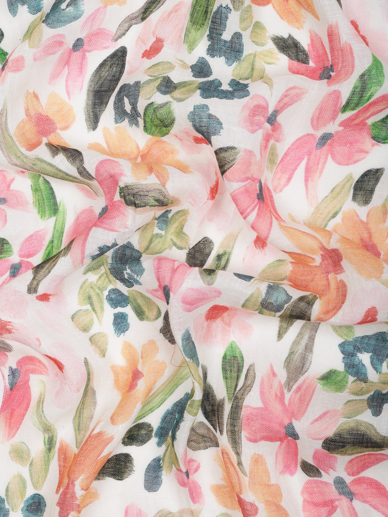 Blossom Garden Multicolor Floral Pure Linen Scarf | Hand-Painted Artistic Designer Wrap