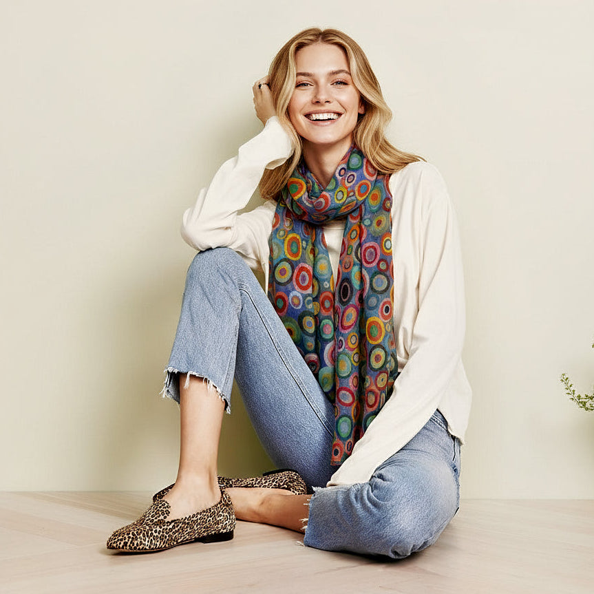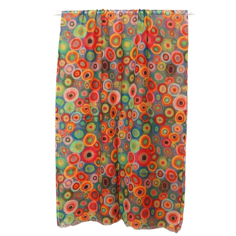 Kaleidoscope Circles Scarf – Modal Silk | Vibrant Geometric Abstract Designer Wrap - Grey base