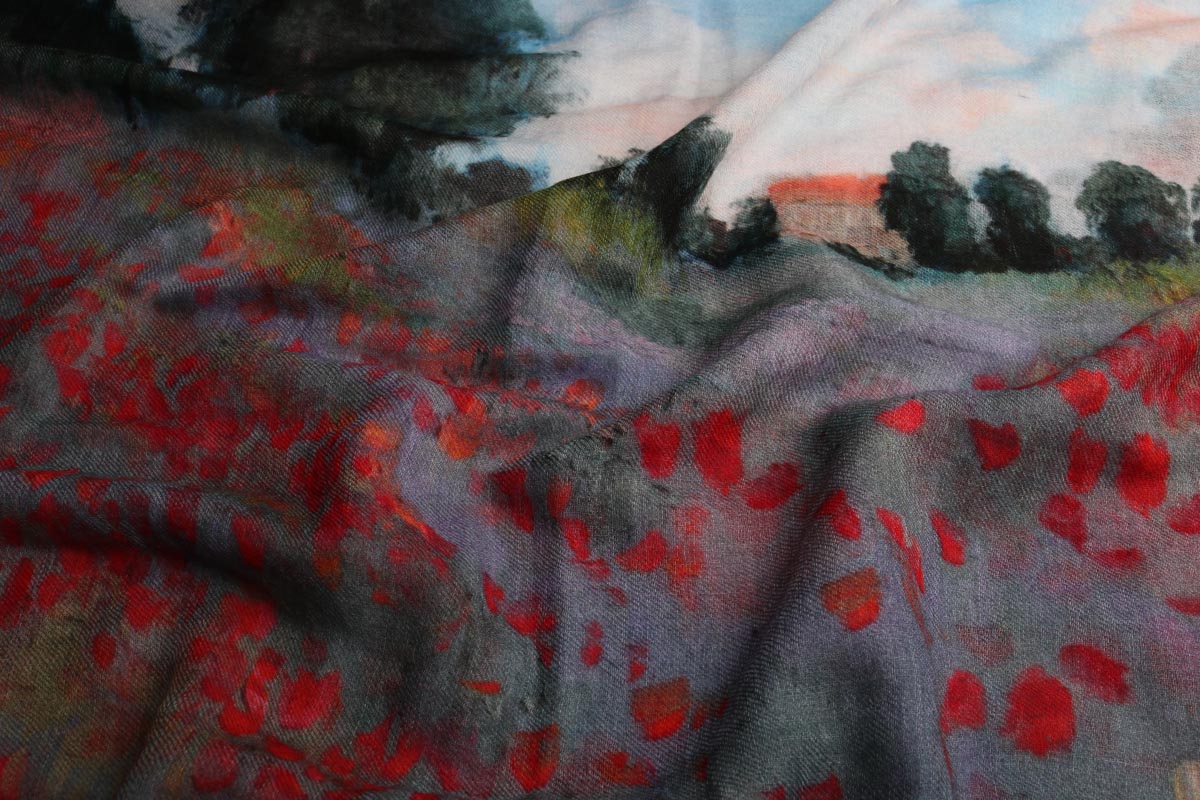 Poppy Field Floral Scarf – Merino Fine Wool Designer Wrap | Monet Inspired Olda MAster Landscape Print