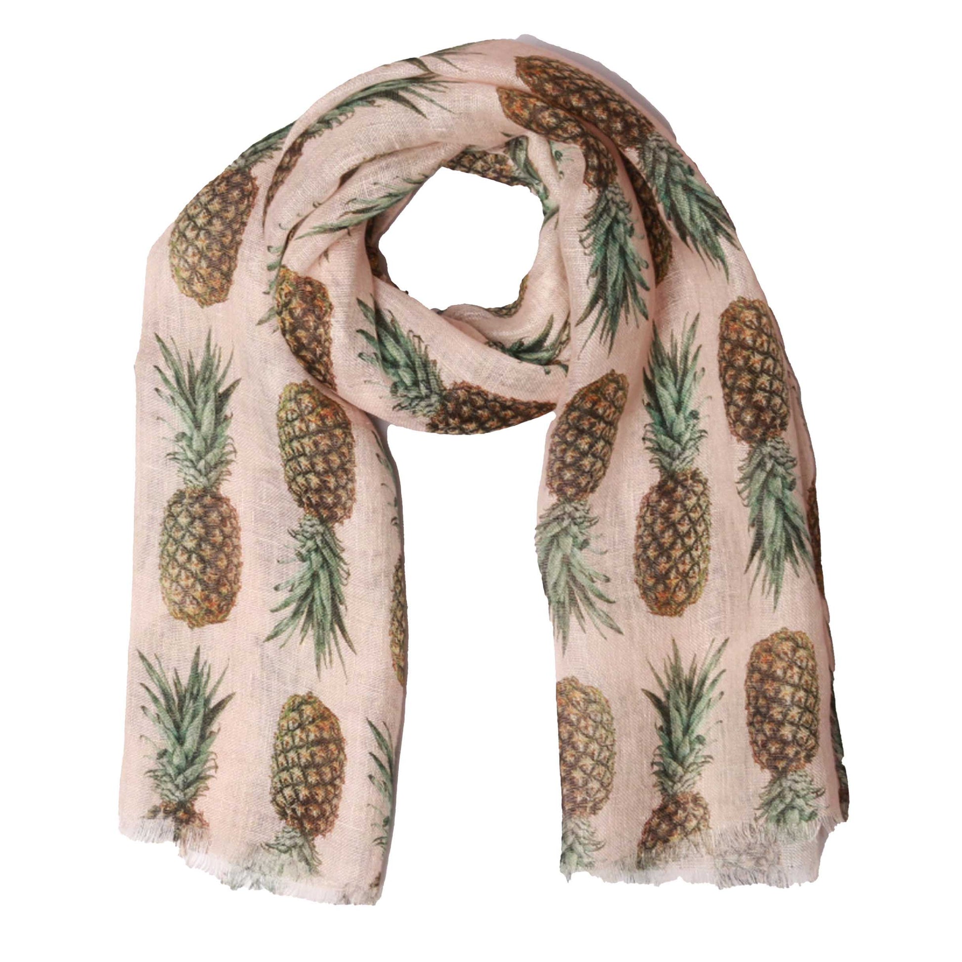 Pink Pineapple Paradise Linen Designer Scarf – 100% Pure Linen Wrap | Tropical Fruit