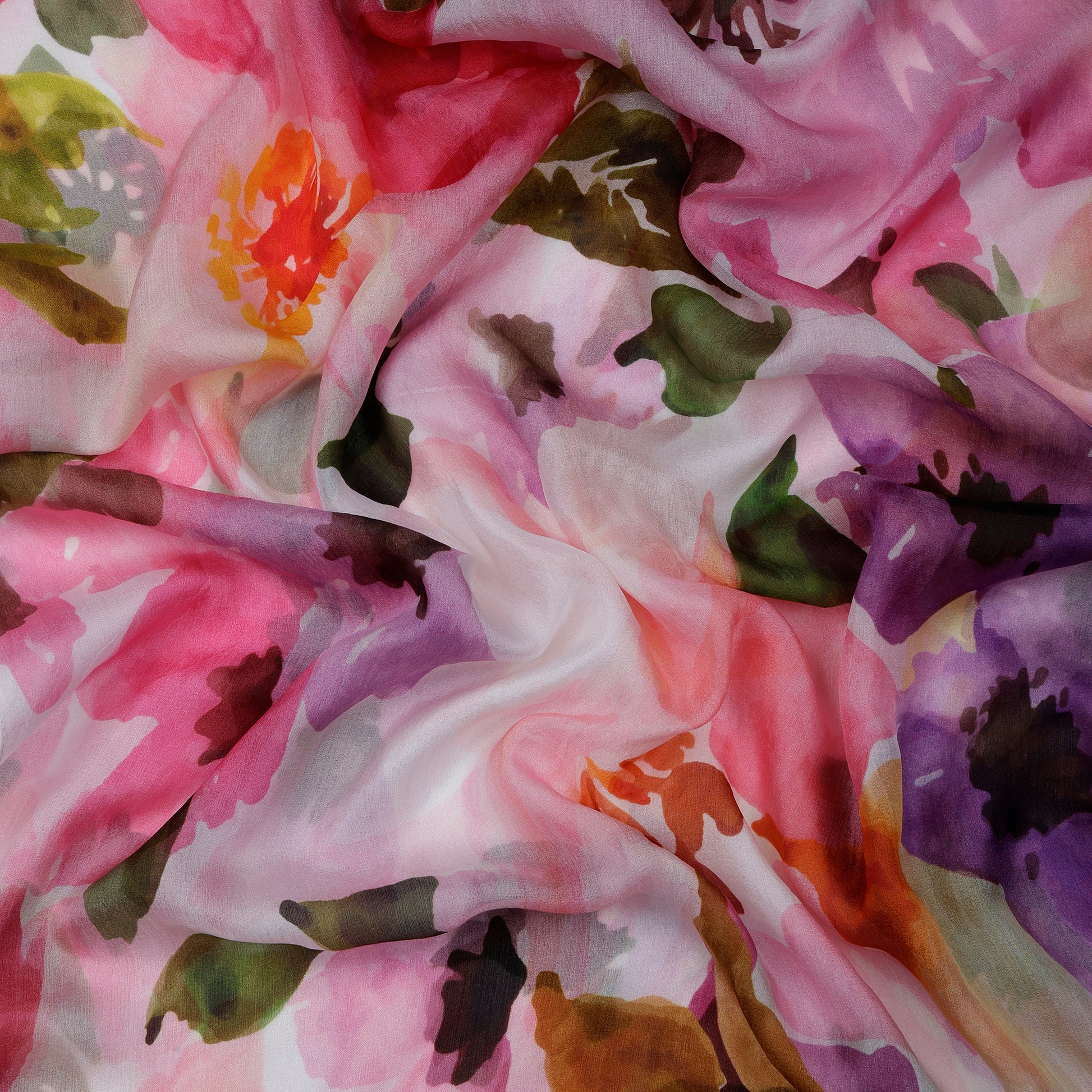 Blossom Watercolor Scarf –Pure Silk Wrap | Hand-Painted Floral Print
