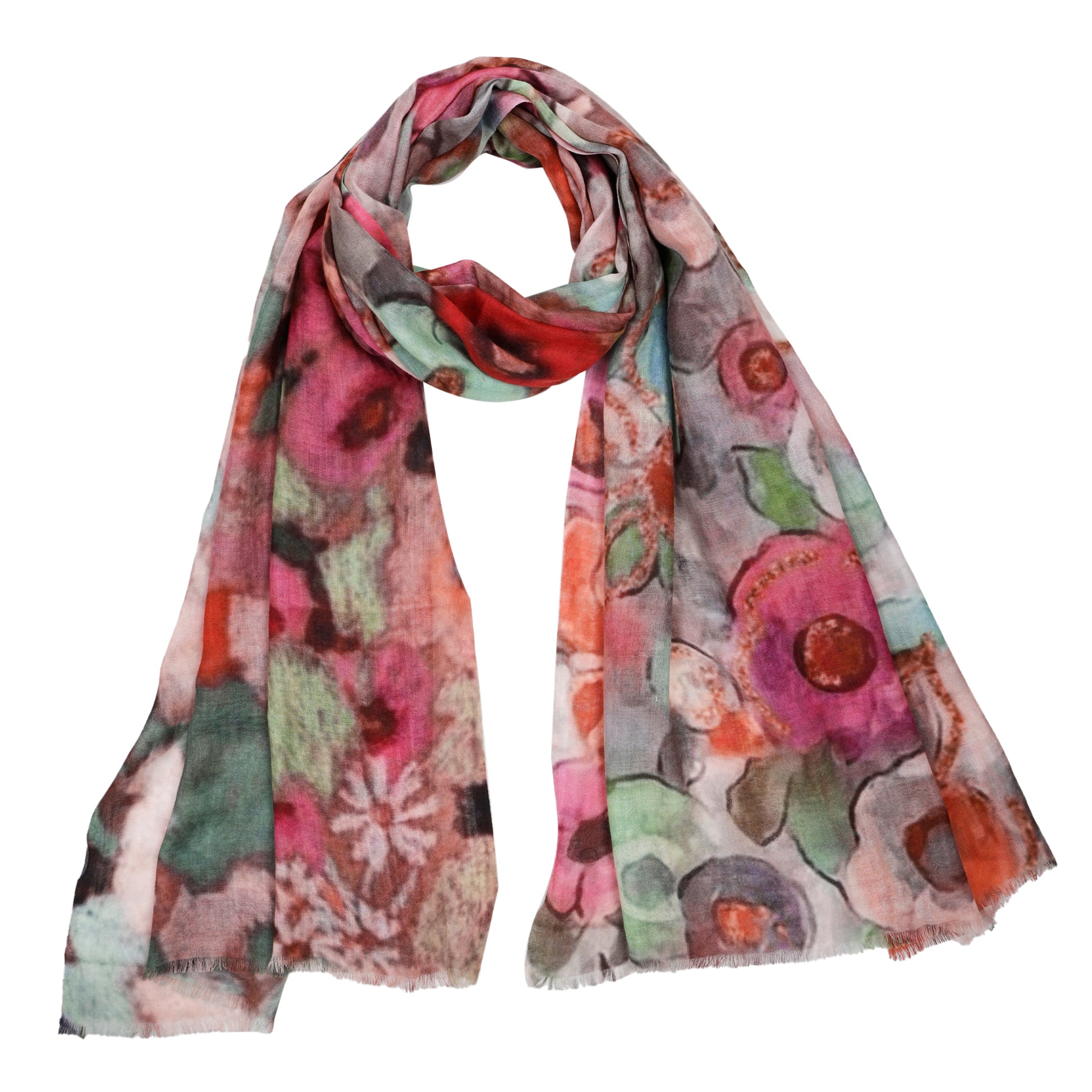 Painterly Garden Mosaic Fine Merino Scarf – Artistic Floral Print
