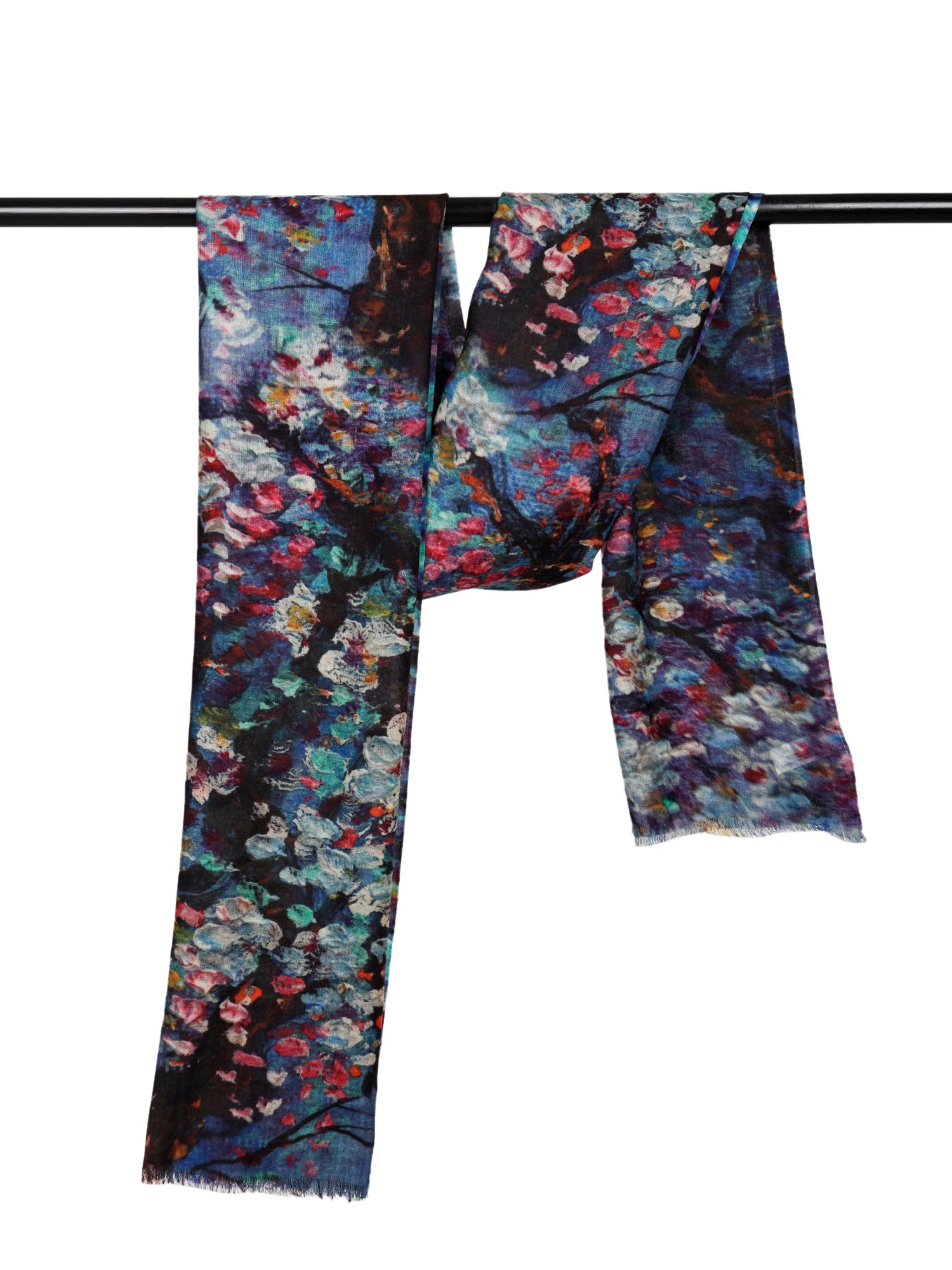 Floral Cherry Blossom Oil Painting Print Fine Merino Designer Scarf