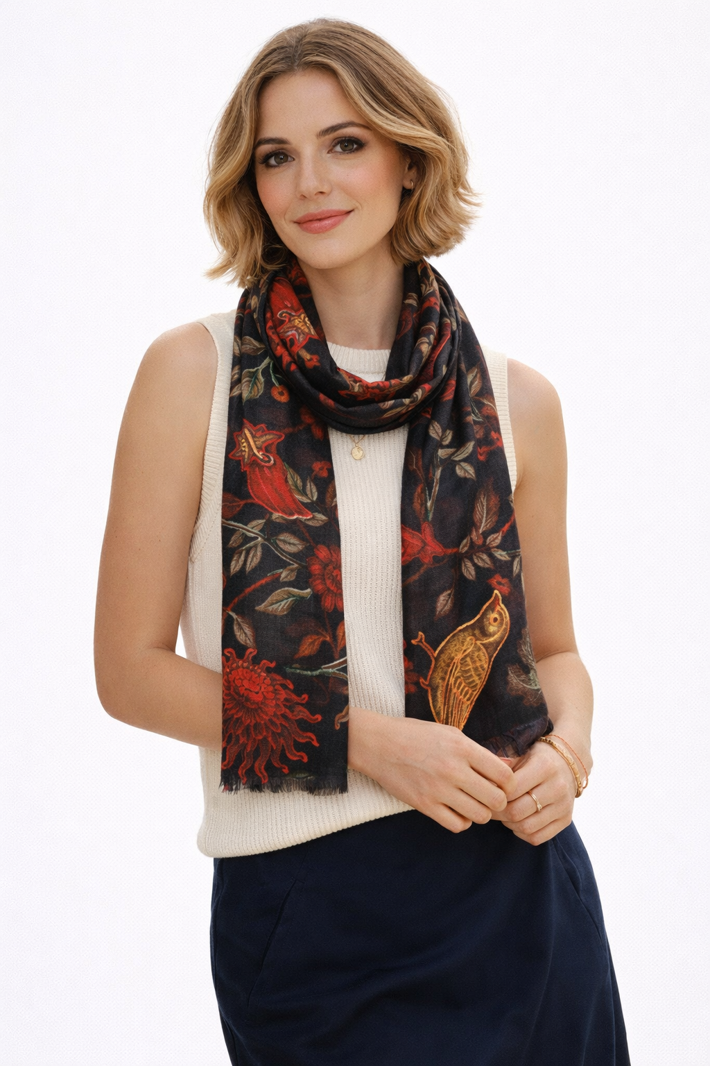 Bufanda de diseño de seda merino con bordados de animales