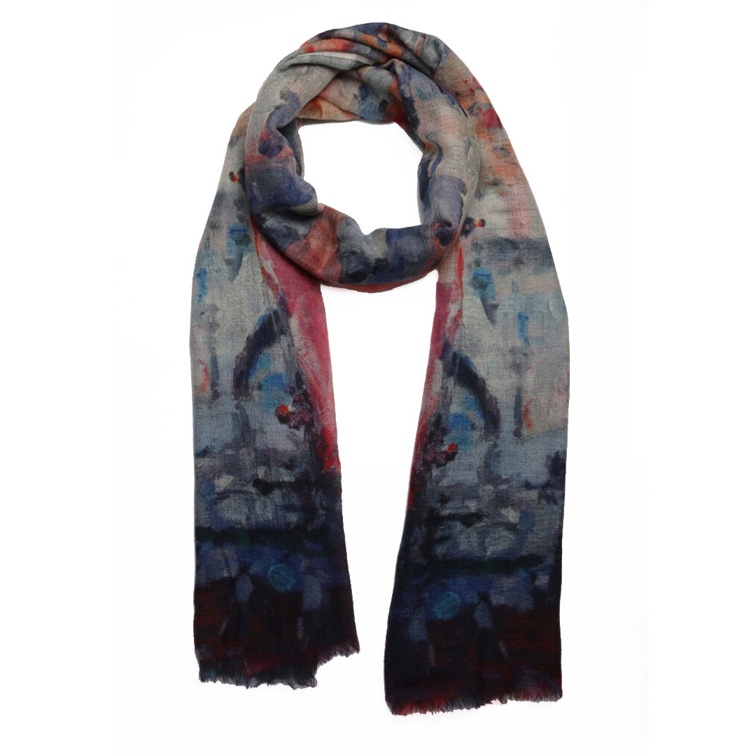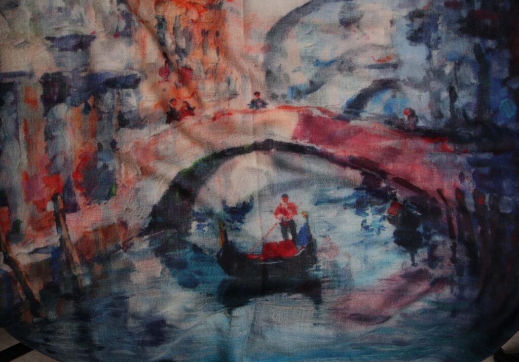 Venice Canal Architectural Scarf – Merino Wool Silk Silk Designer Wrap | Gondola Cityscape Print
