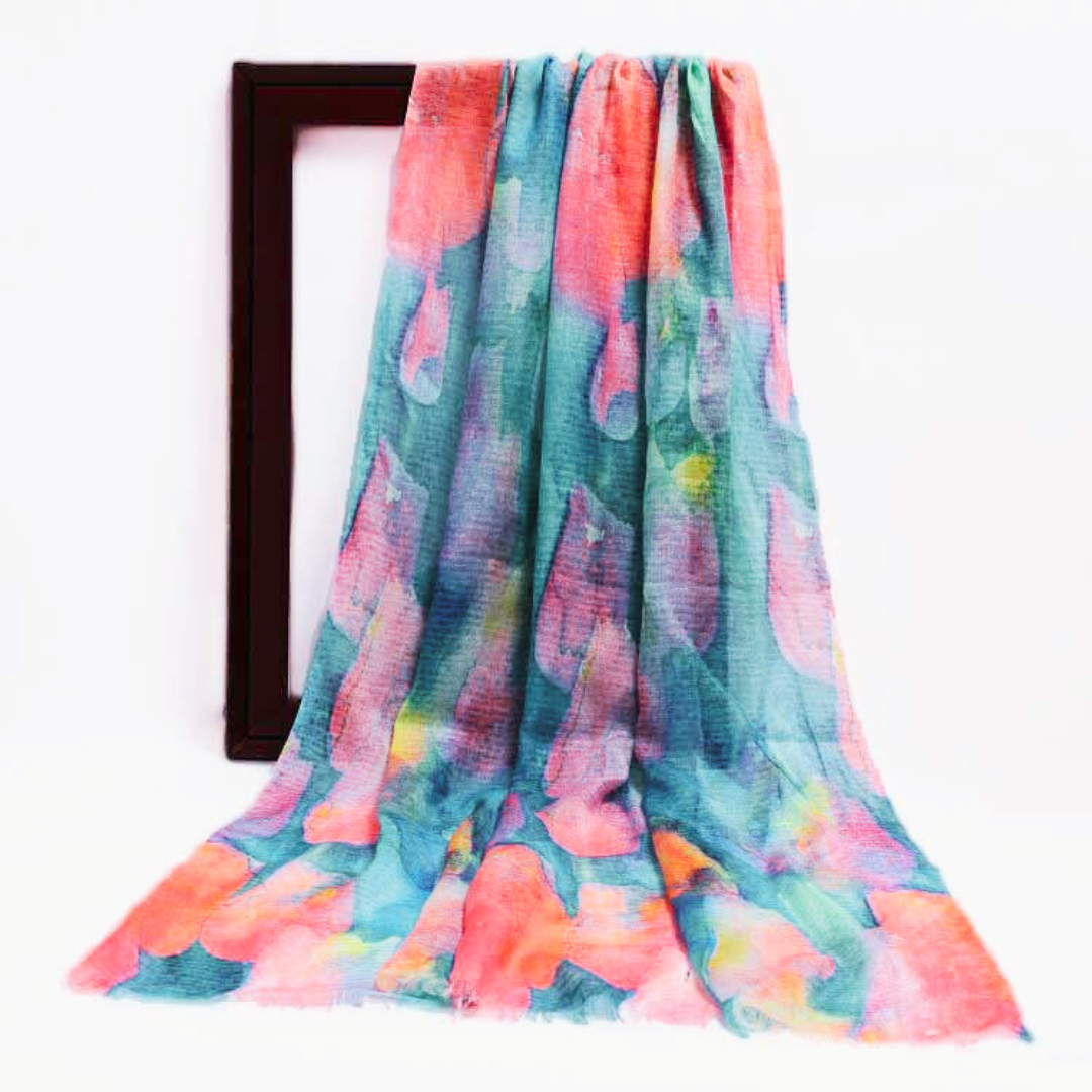 Pastel Bloom Abstract Floral Scarf – Modal Silk Designer Wrap | Watercolor Tulip Print