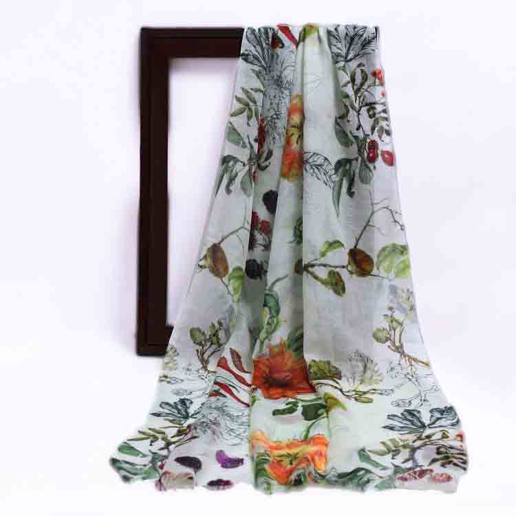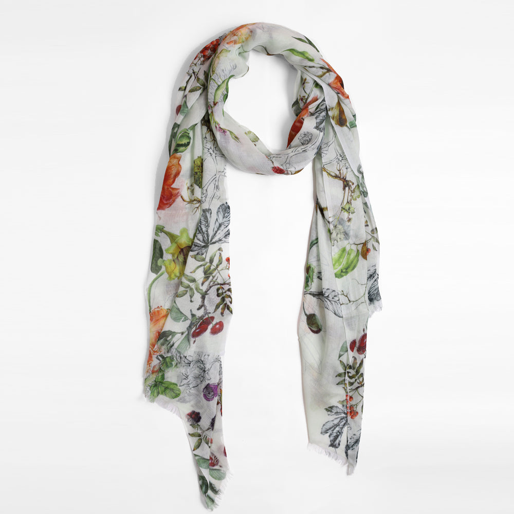 Botanical Garden Bloom Scarf – Modal Silk Designer Wrap | Pastel Artistic Floral Print