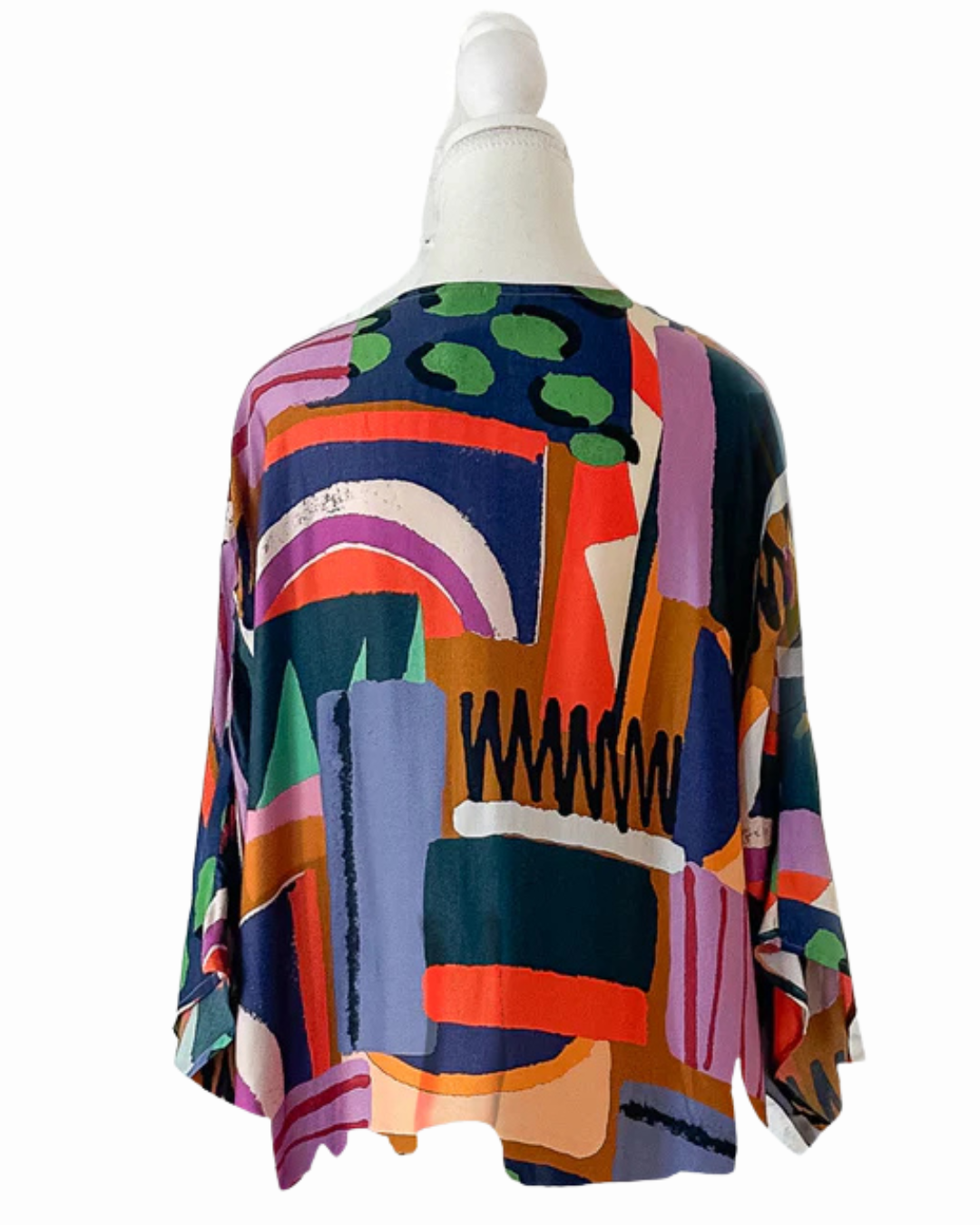 Electric Patchwork Short Kimono – Abstract Colour Block Cotton Muslin Jacket