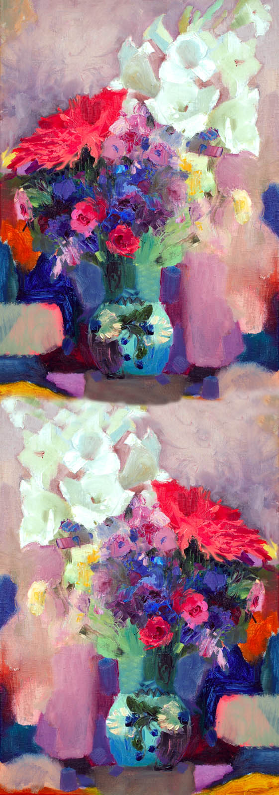 Vibrant Vase Floral Scarf – Pure Silk Designer Wrap | Artistic Bouquet Print