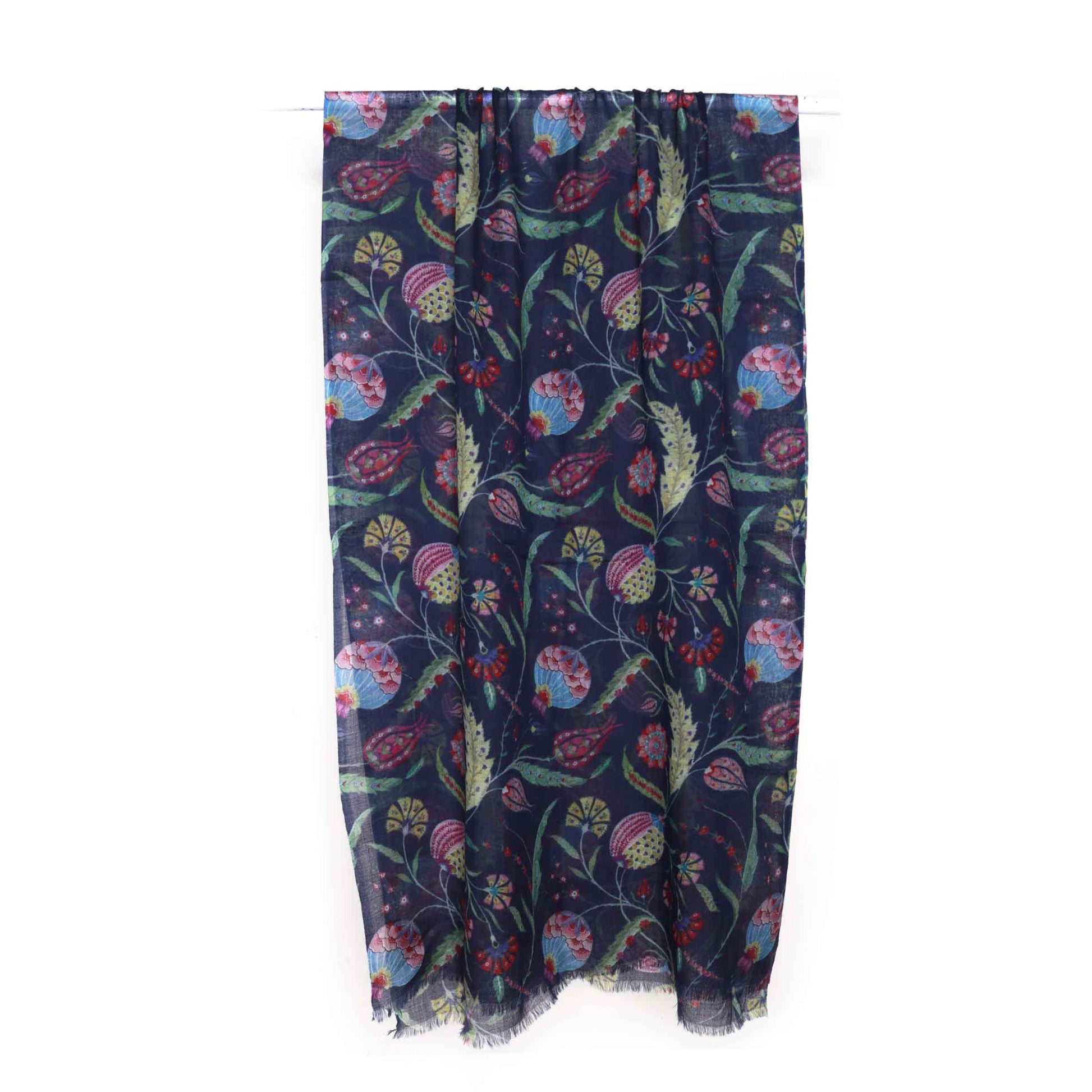 Midnight Botanical Paisley Merino Silk Scarf – Hand-Drawn Floral Art