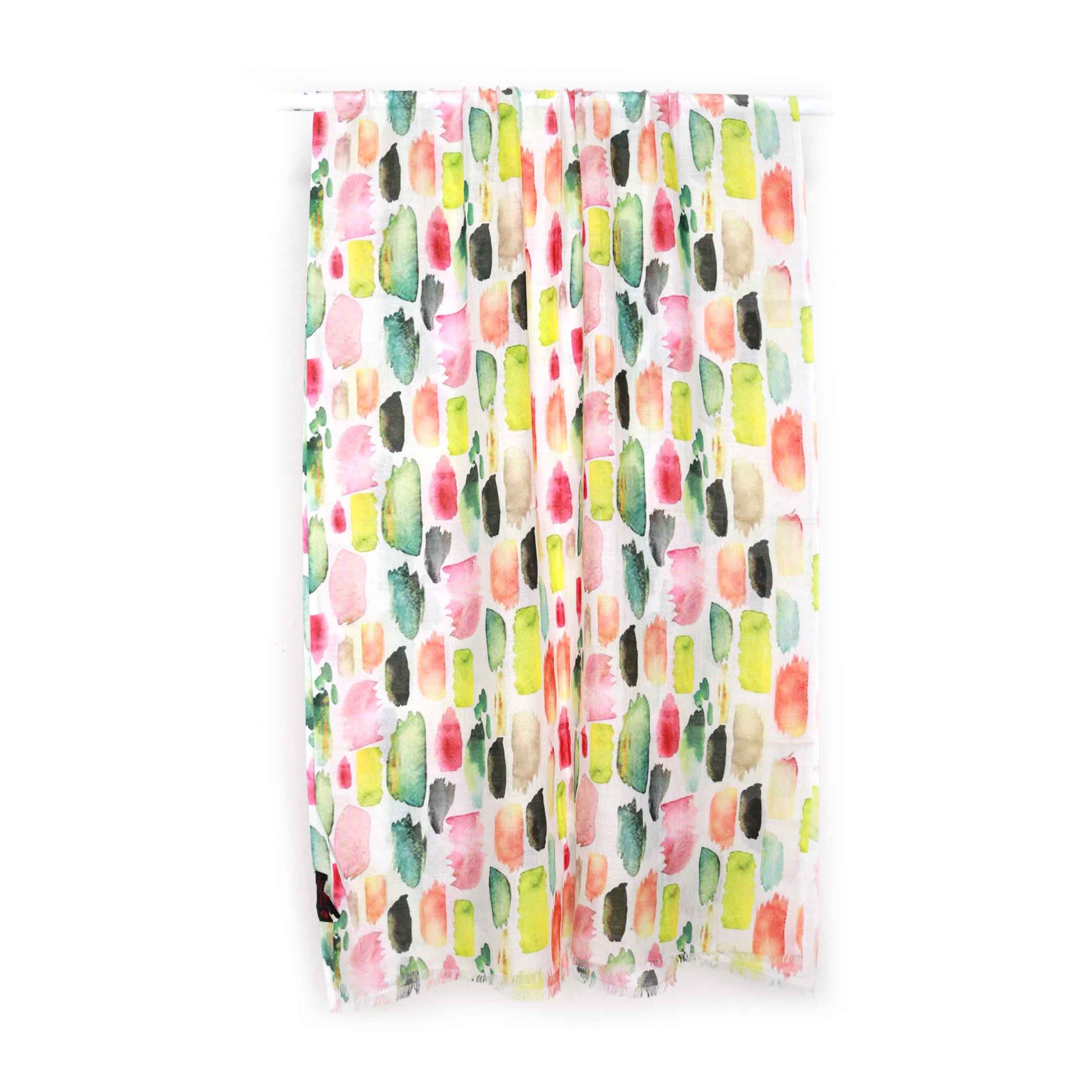 Watercolor Mosaic Scarf – Modal Silk Wrap | Multicolor Abstract Brushstroke Design