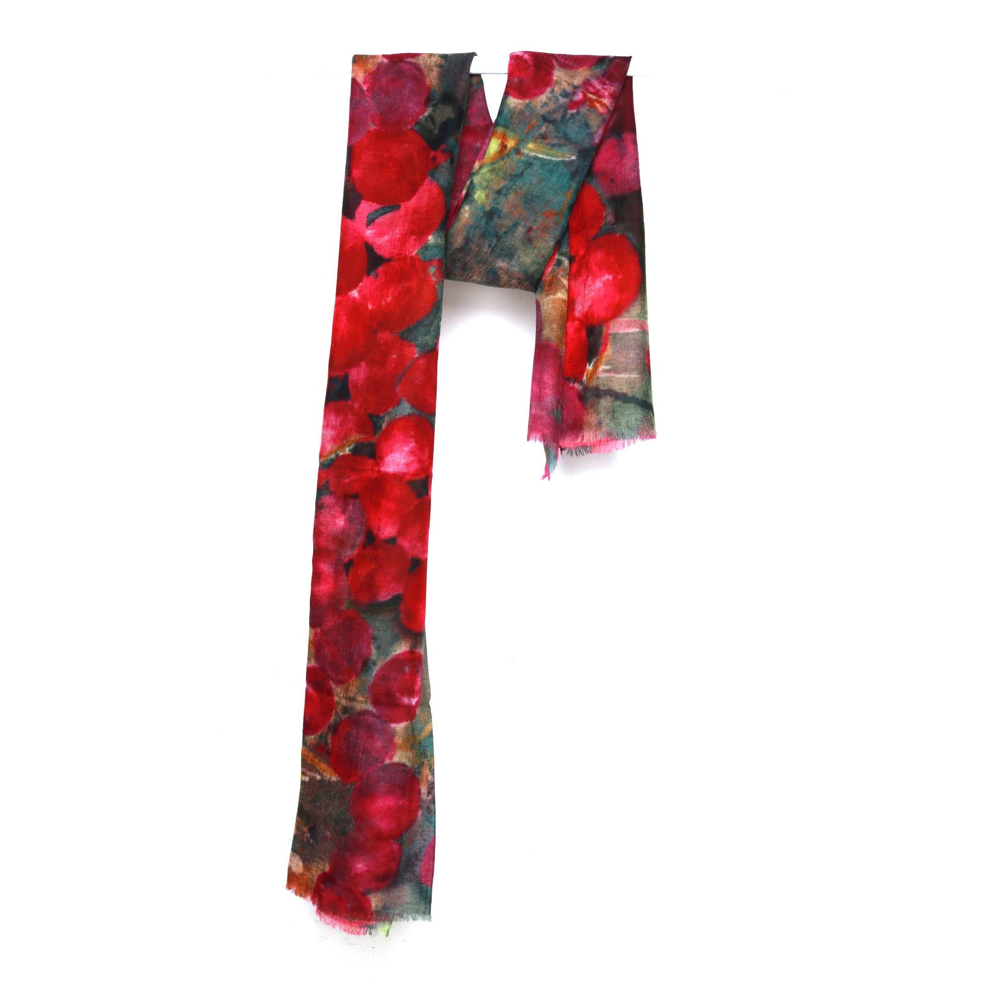 Crimson Vineyard Scarf – Merino Fine Wool Wrap | Abstract Grape Cluster in Artistic Greens & Magenta