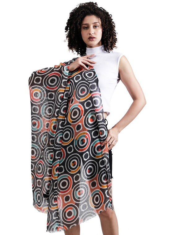 Geometrical Fine Twill Merino Silk Designer Scarf