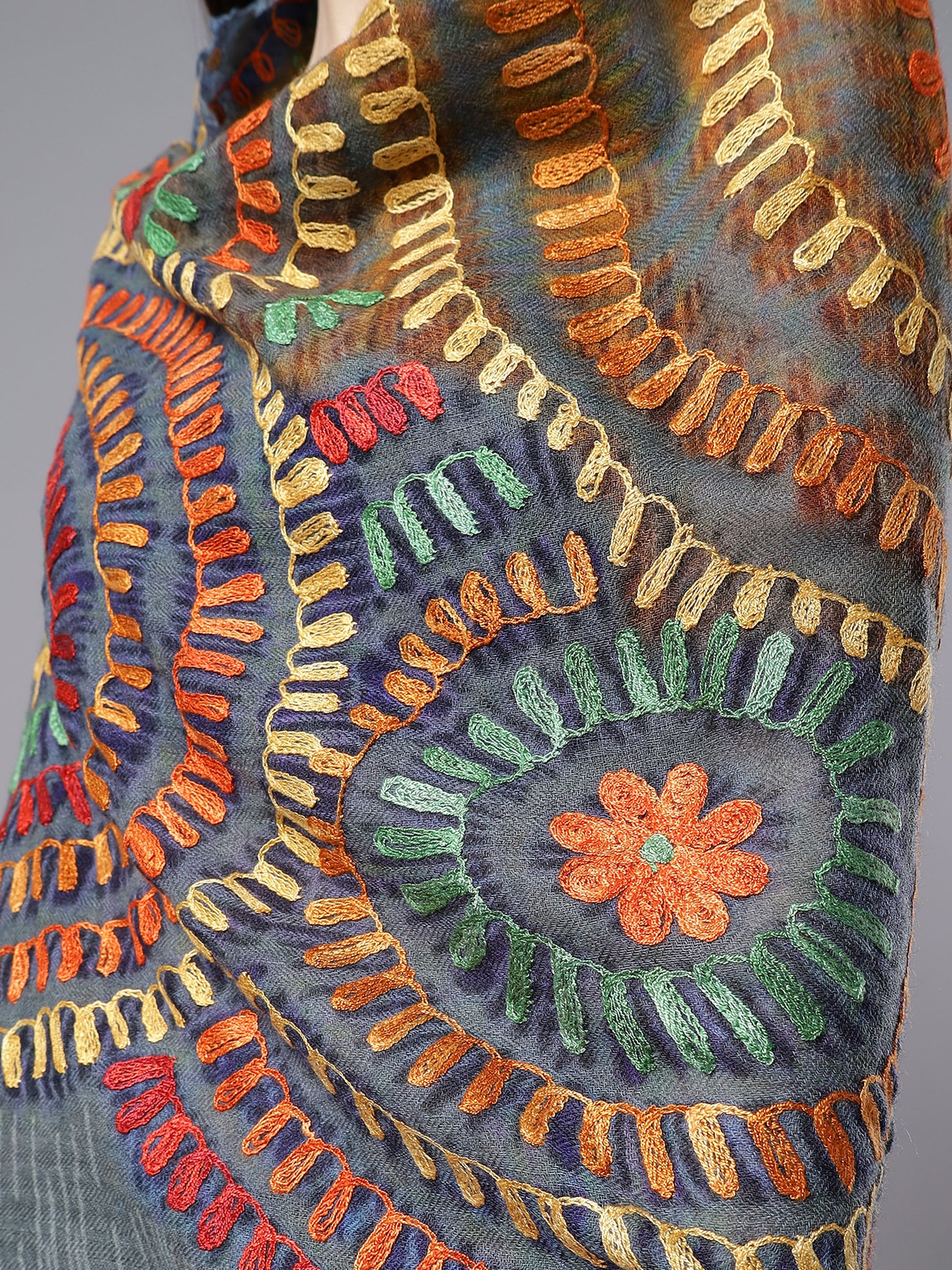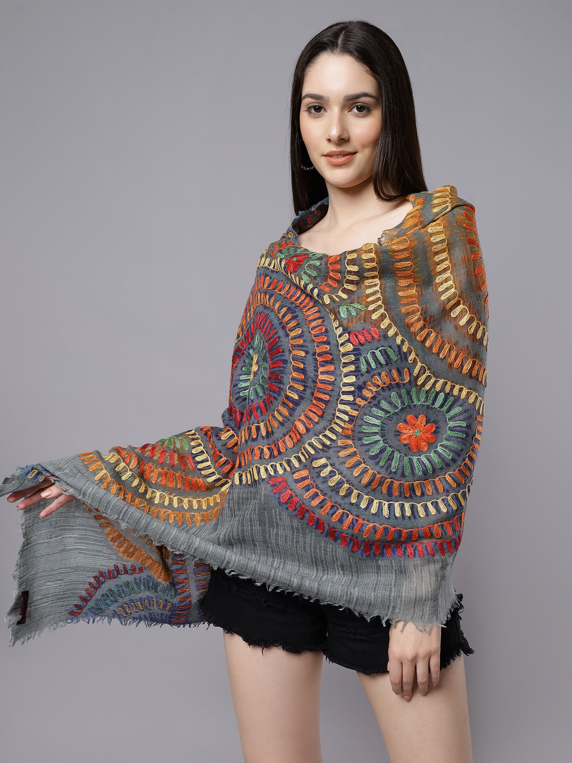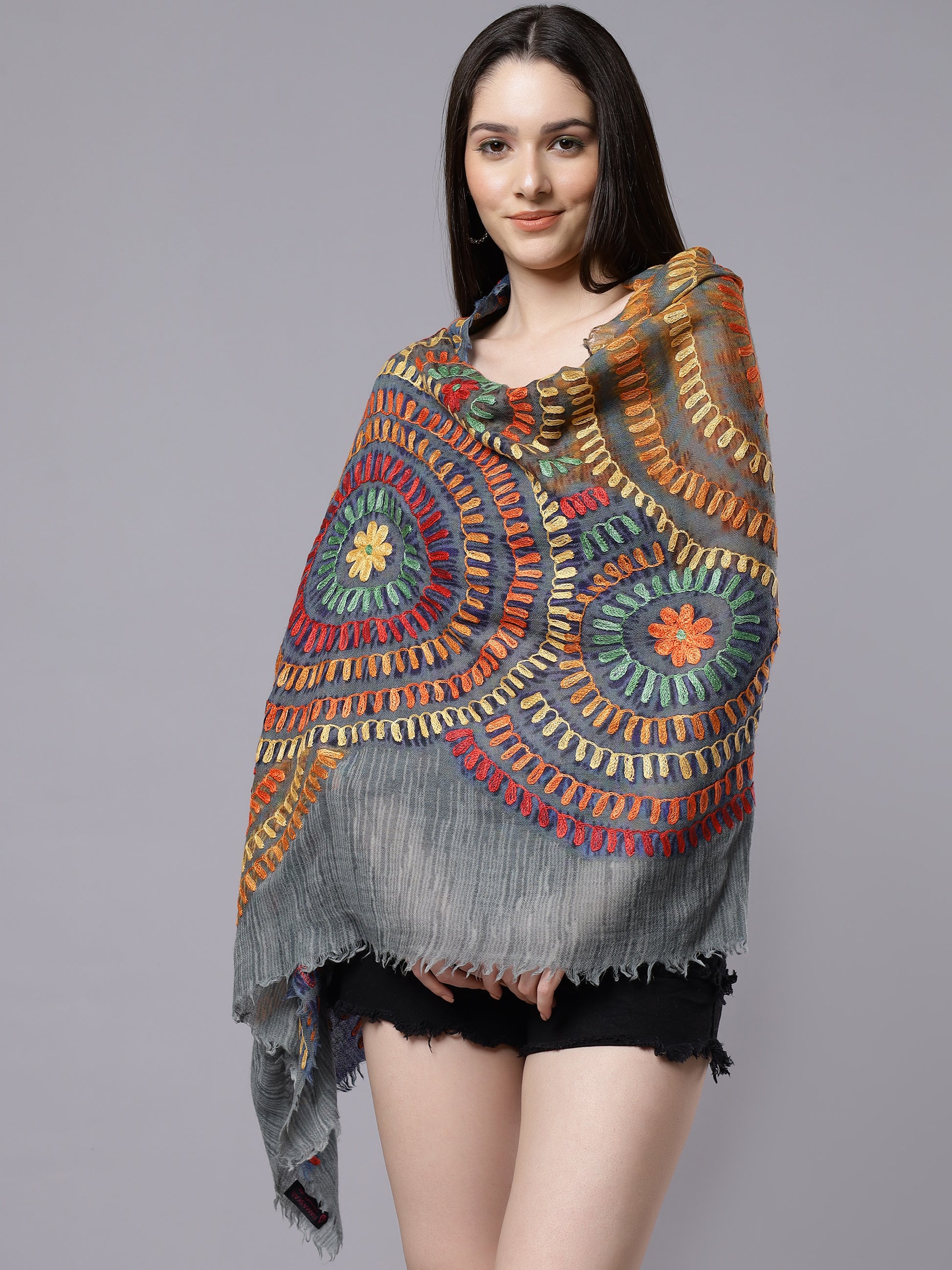 Concentrics pattern Merino Wool Designer Embroidered Scarf