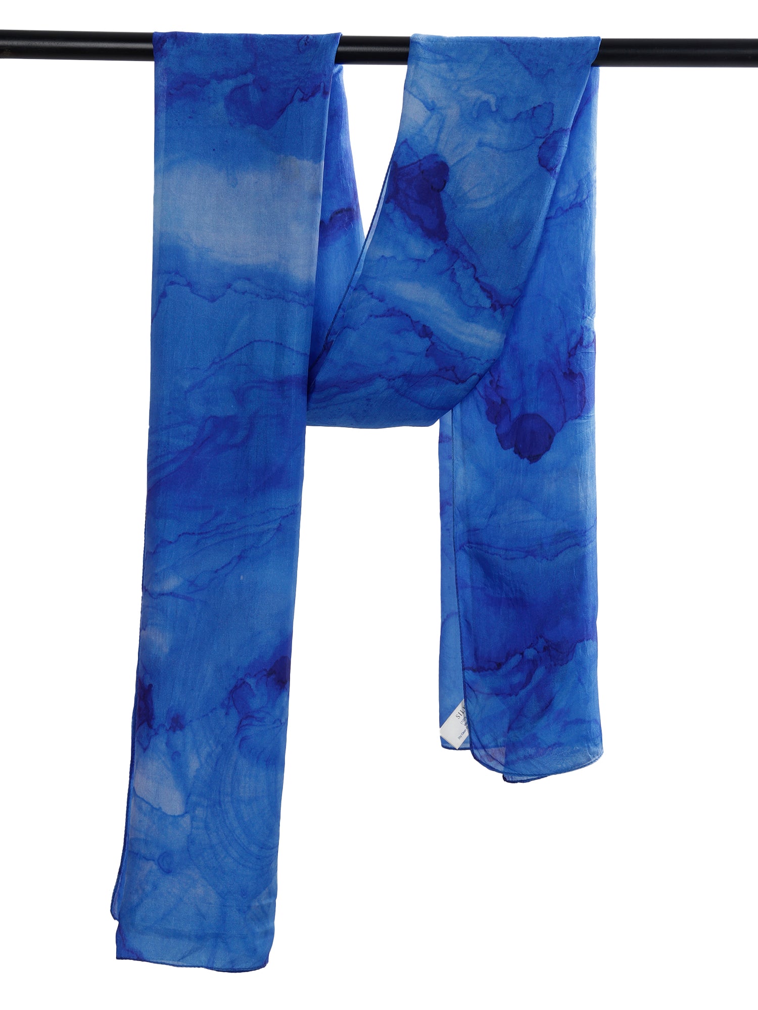 Ocean Waves Scarf – Pure Silk Wrap | Abstract Blue Watercolor Print