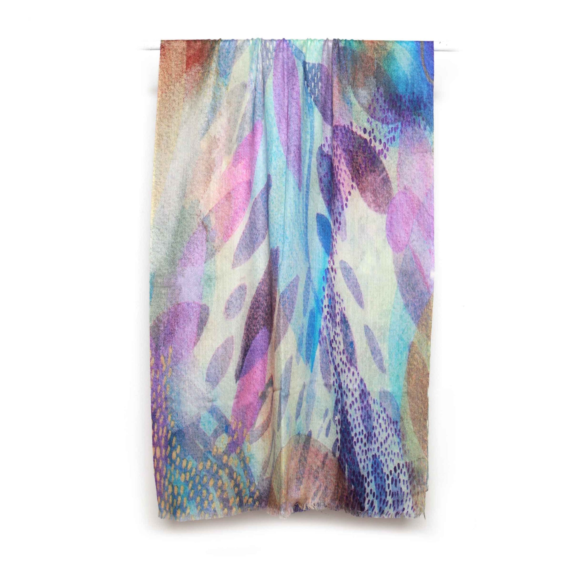 Mystic Waves Abstract Scarf – Merino Fine Wool Designer Wrap | Blue & Purple Artistic Print