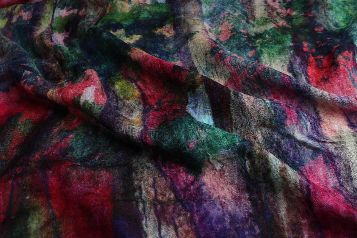 Autumn Forest Abstract Scarf – Merino fine Wool Designer Wrap | Colorful Woodland Watercolor Print