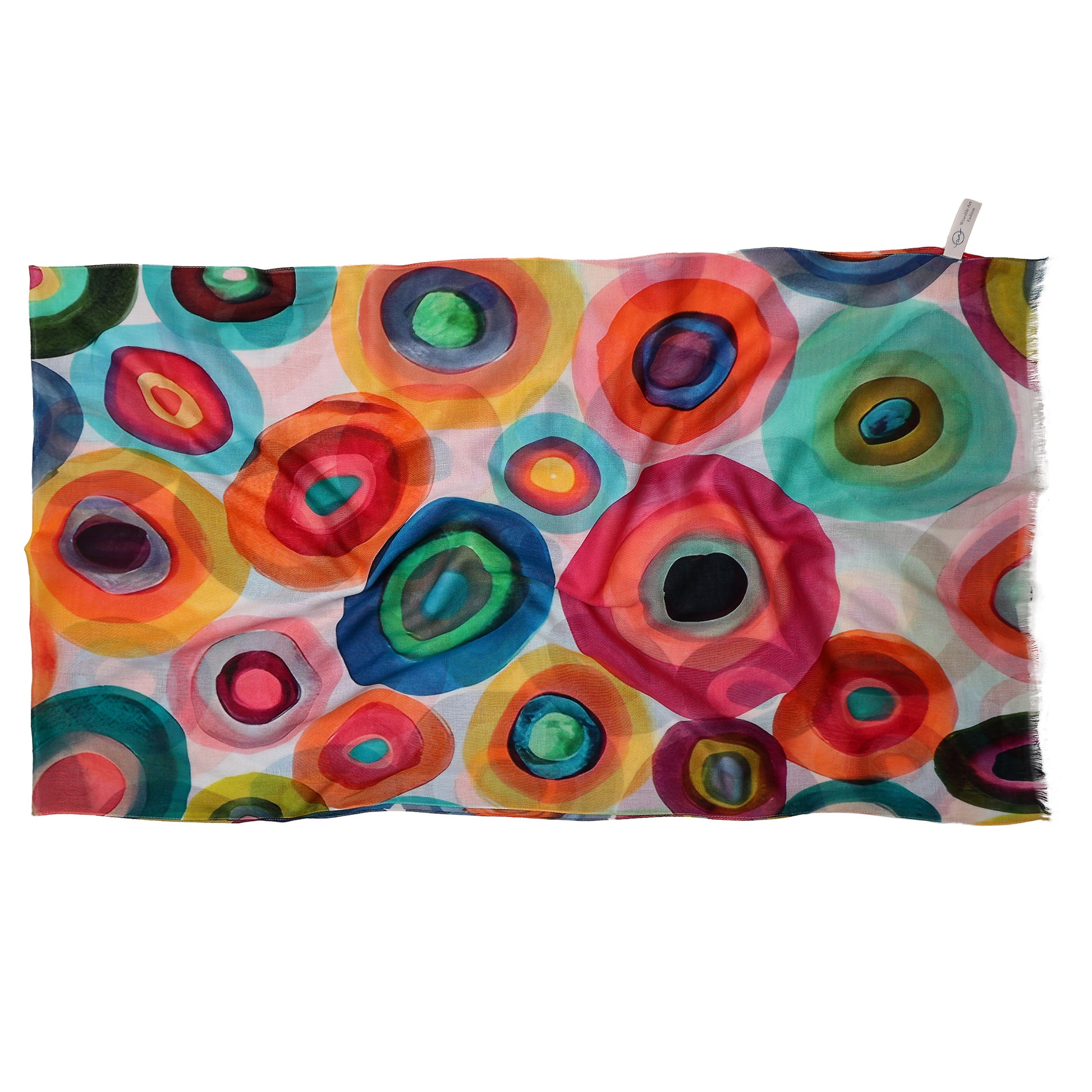 Chromatic Orbit Modal Silk Scarf – Abstract Circle Art Print