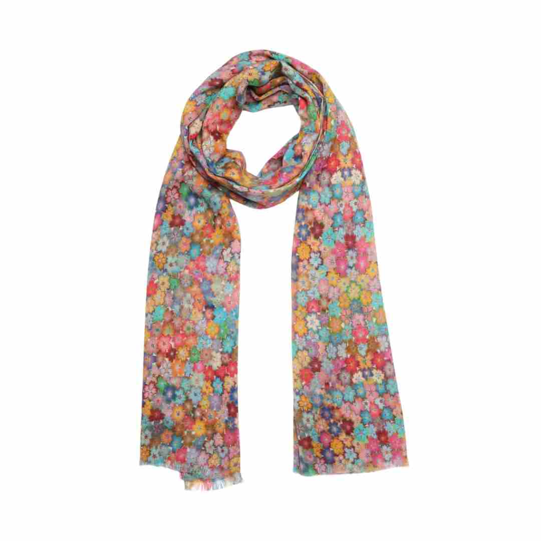 Millefiori Blossom Multicolour Abstract Floral Coton Modal Designer Scarf | Vibrant Artistic Wrap