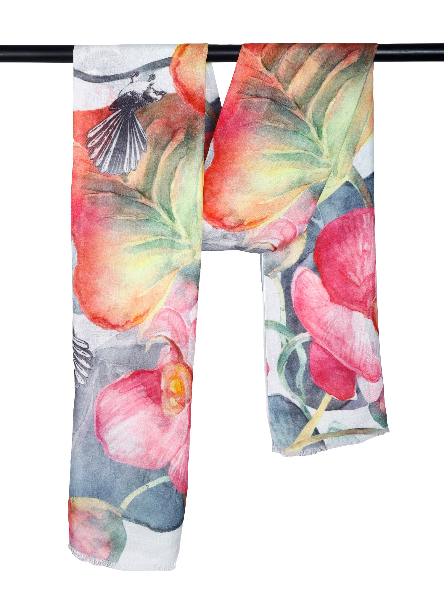 Orchid Bloom Botanical Scarf – Fine Merino Wool Designer Wrap | Elegant Floral Nature Print