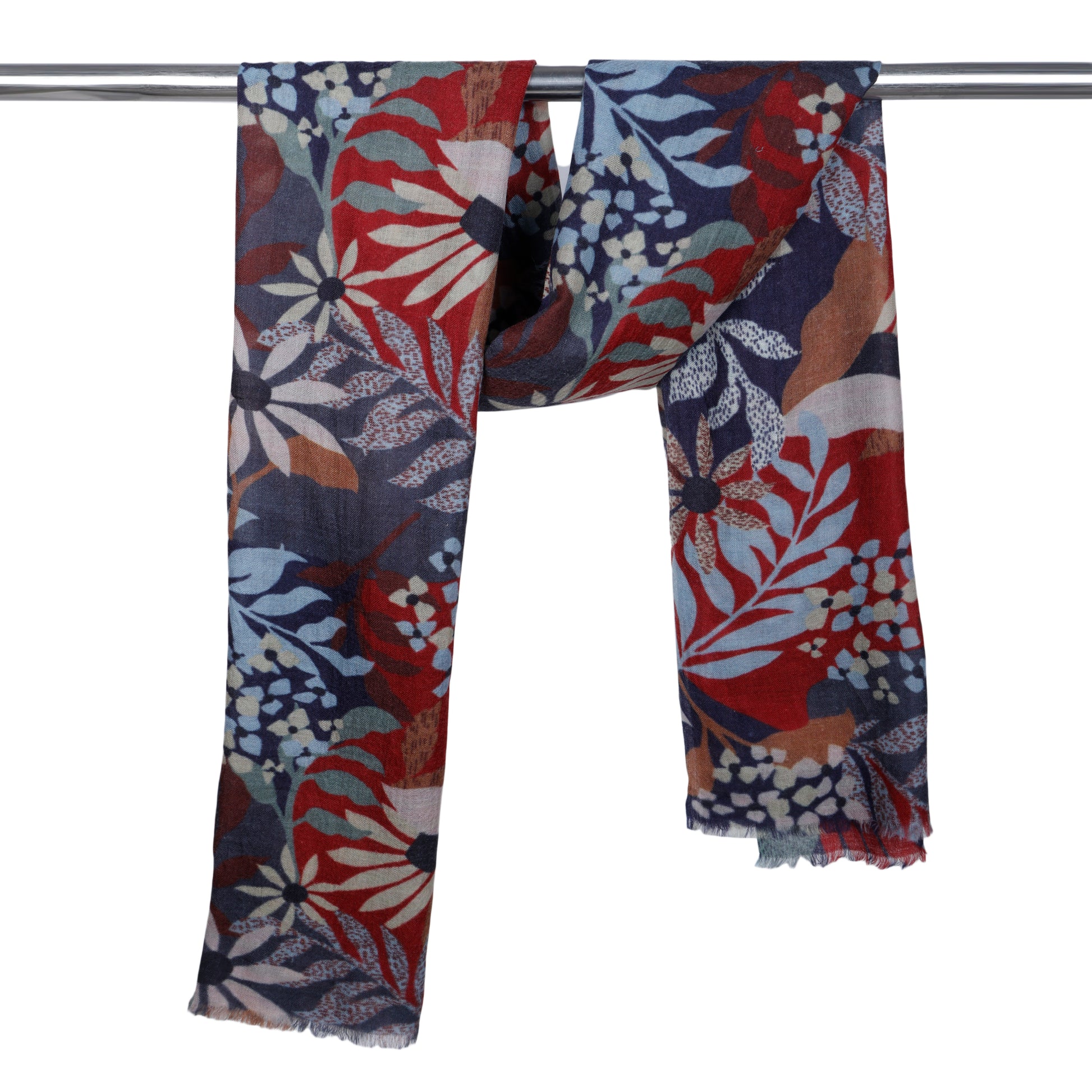Midnight Bloom Abstract Floral Scarf – Merino Wool Silk | Botanical Wearable Art Wrap