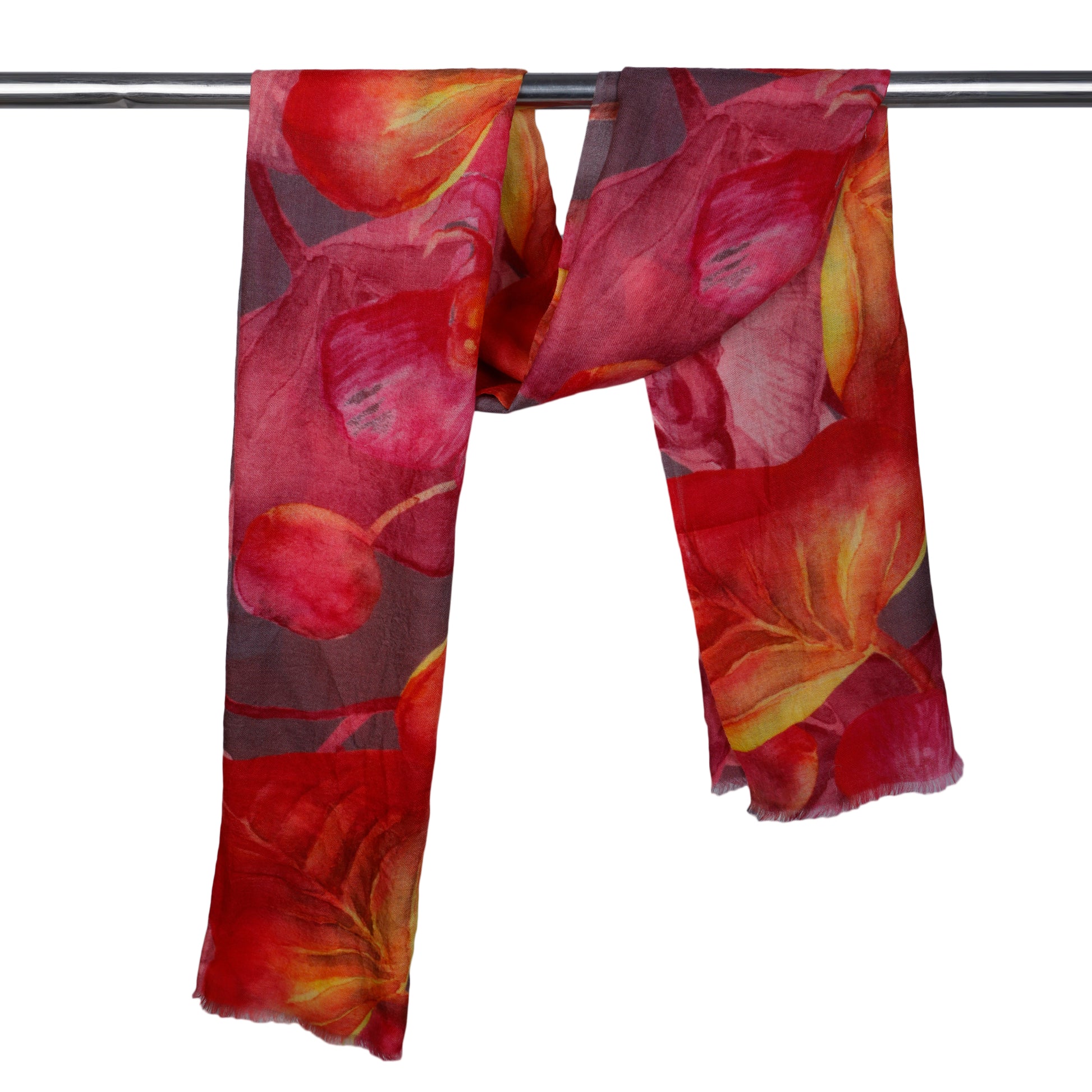 Orchid Radiance Scarf – Modal Silk | Watercolor Pink & Magenta Floral Wrap on Grey