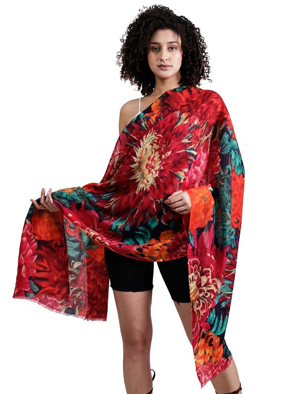 Japanese Chrysanthemum Glory Floral Scarf – Modal Silk Designer Wrap | Bold Botanical Bloom Print